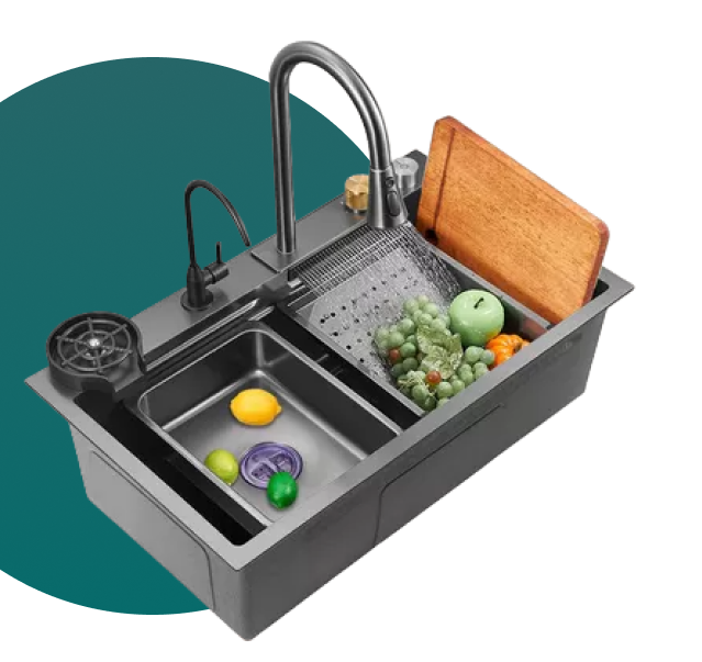 Combine nossas torneiras e cubas, obtendo uma junção perfeita que se enquadra na sua cozinha.